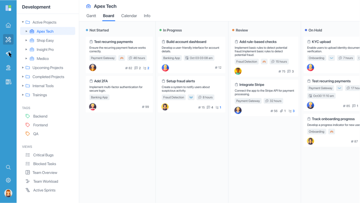 • The drag-and-drop board layout makes it easy to move work between stages and keep everyone aligned.