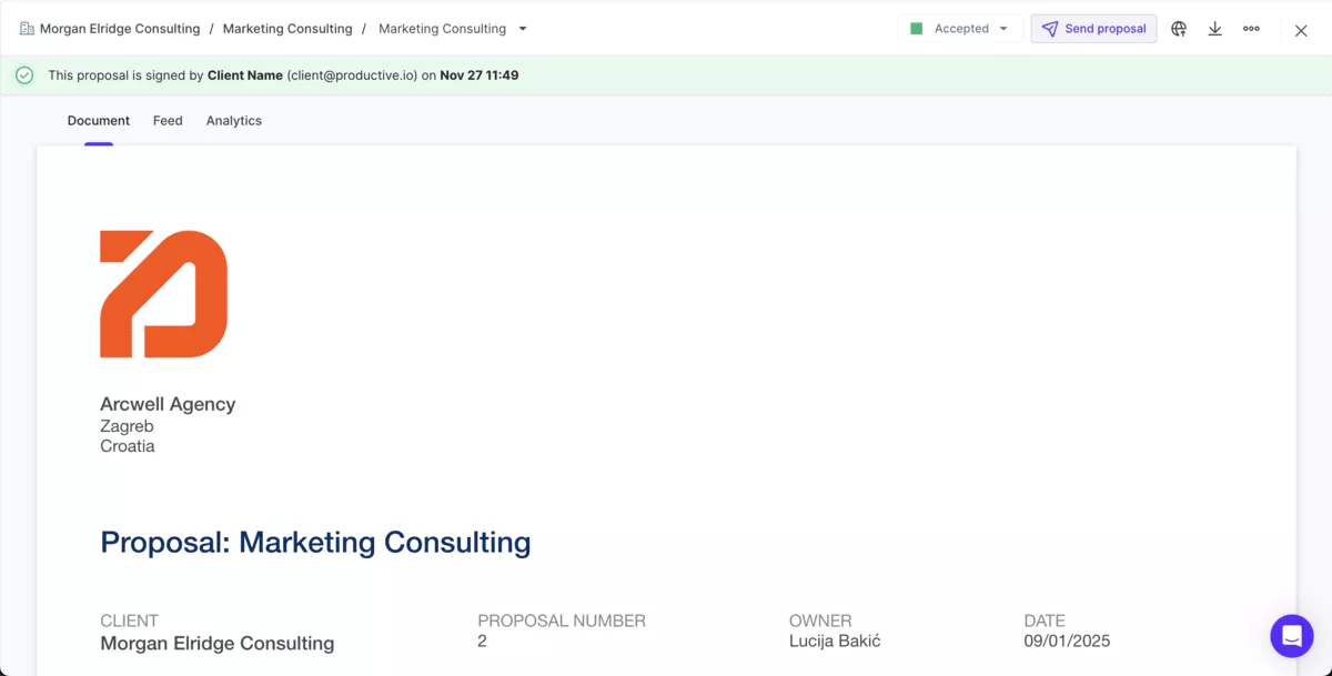 Introducing: Creating, sending, and getting proposals signed in Productive.