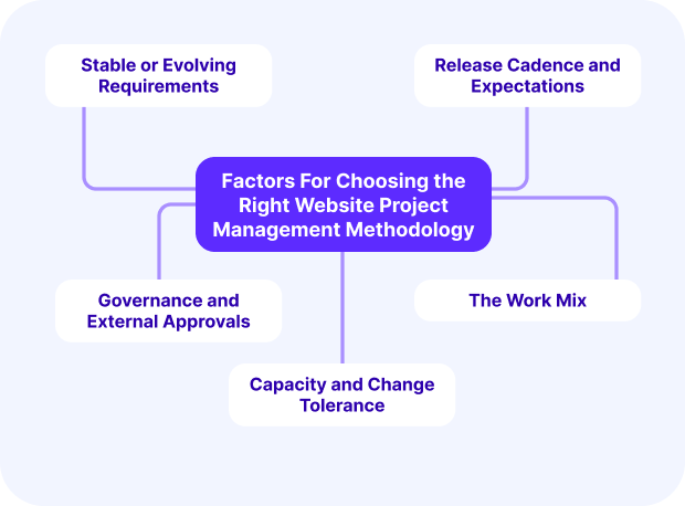 Assess requirement volatility, release cadence, compliance and approval needs, the dominant work type, and how much change your dates can absorb, then select Waterfall, Scrum, Kanban, or a hybrid that fits those limits.