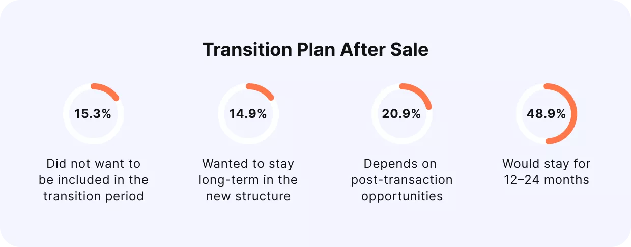 When asked about transition plans, most owners said they would stay for at least 12 months, which matters to buyers for client retention and team stability.