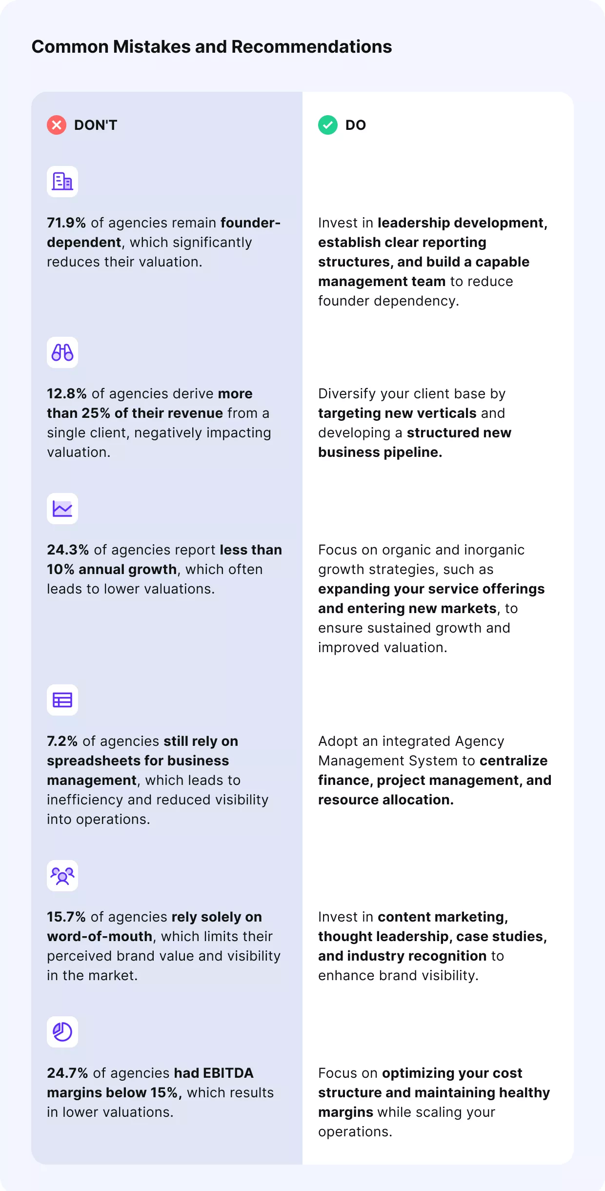 While this is lower than previous years, it still represents a significant valuation risk. Agencies must continue diversifying their client portfolios to ensure financial stability and stronger valuations.